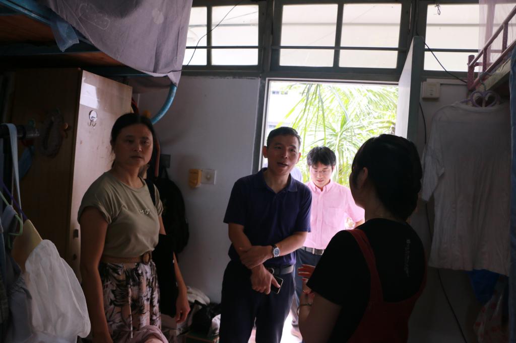 在走访中,院长刘复生、学院党委副书记罗邻球、副院长张硕果以及辅导员逐一进入学生寝室,仔细查看宿舍环境卫生、了解宿舍生活服务设施运行、与同学们亲切交谈,表达了对同学们学习、生活的关心。