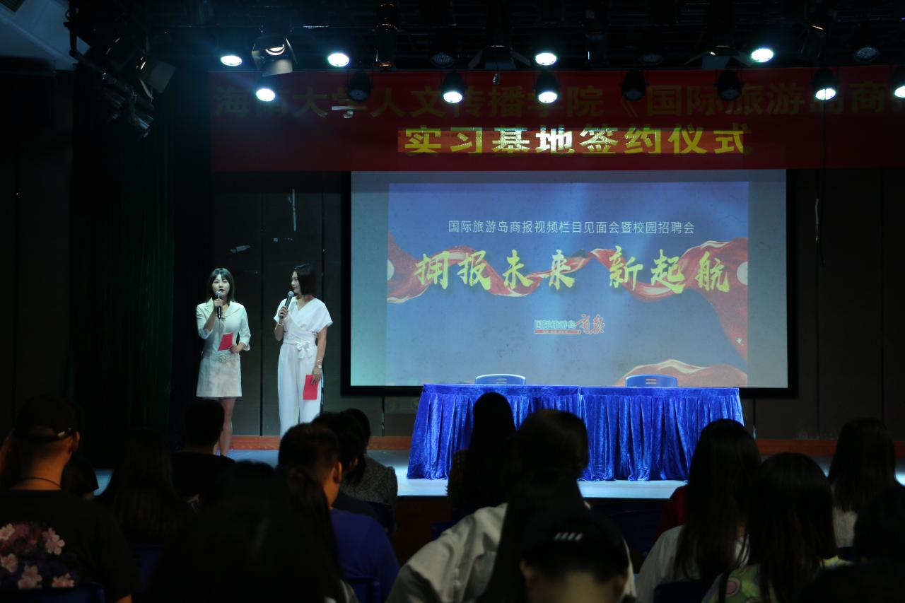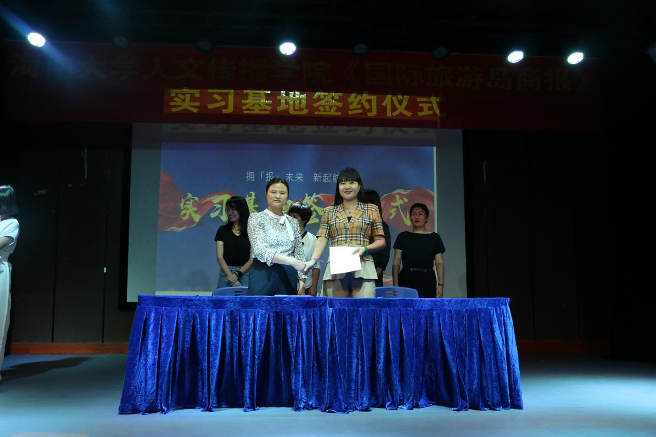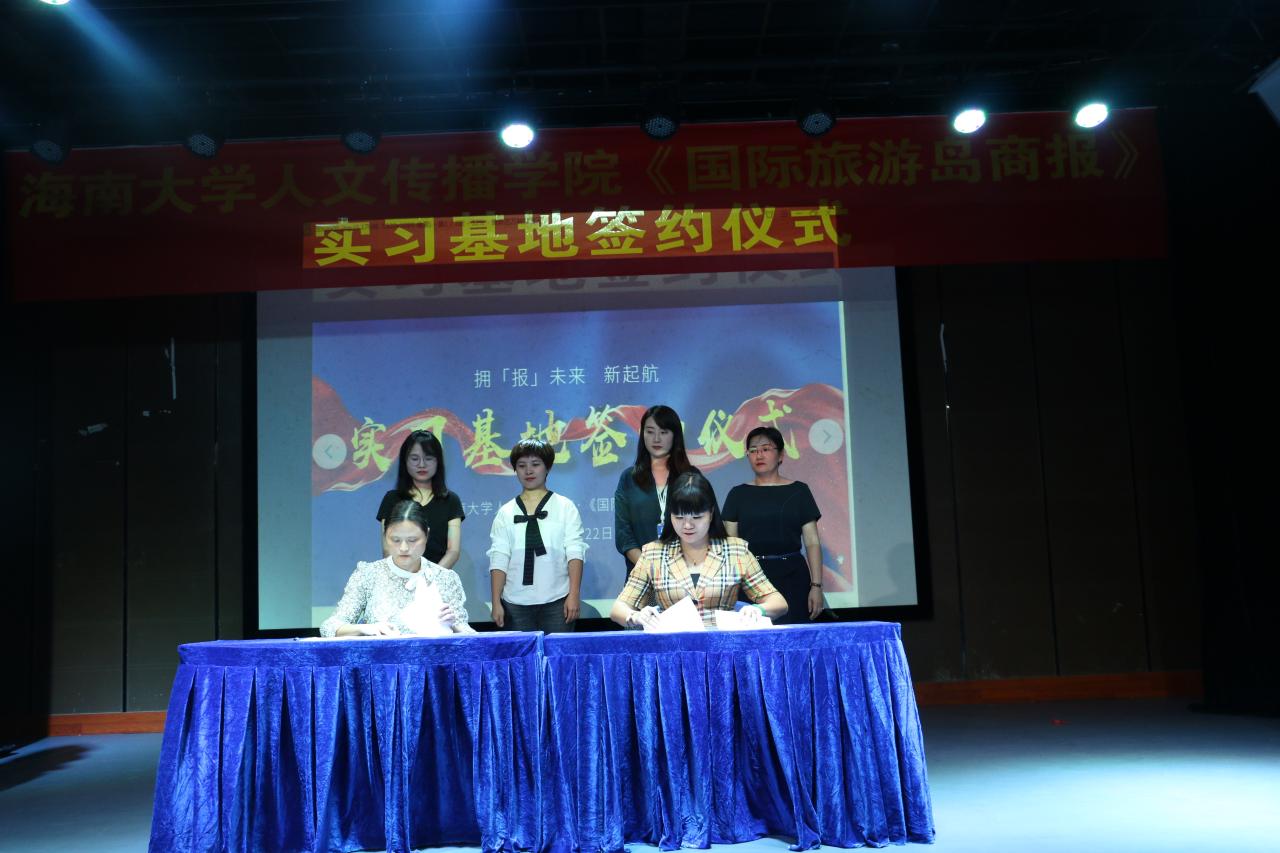 10月22日晚,人文传播学院与《国际旅游岛商报》实习基地签约仪式如期举行,学院党委副书记罗邻球、副院长李彩霞及学工办各老师出席仪式。