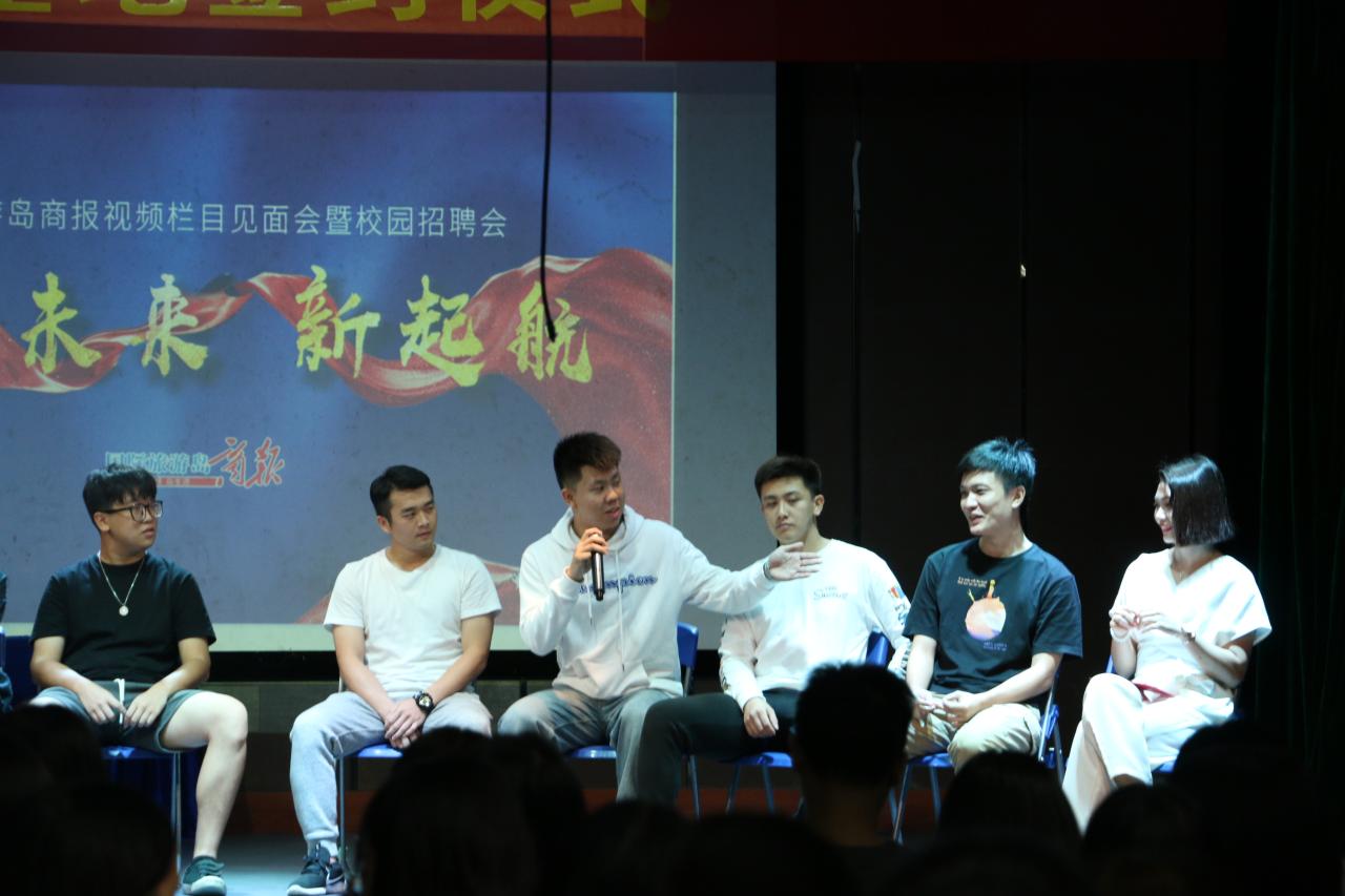 签约结束后,进入宣讲环节,《国际旅游岛商报》工作人员先是简单地介绍了各自负责的工作内容,接着为同学们分享了节目制作的经验和制作过程中的趣事儿,鼓励同学们要相信自己,兴趣发挥到极致就会有收获;到场学生认真聆听、积极回应,现场气氛热烈、互动频繁。宣讲结束后,此次活动也落下了帷幕。