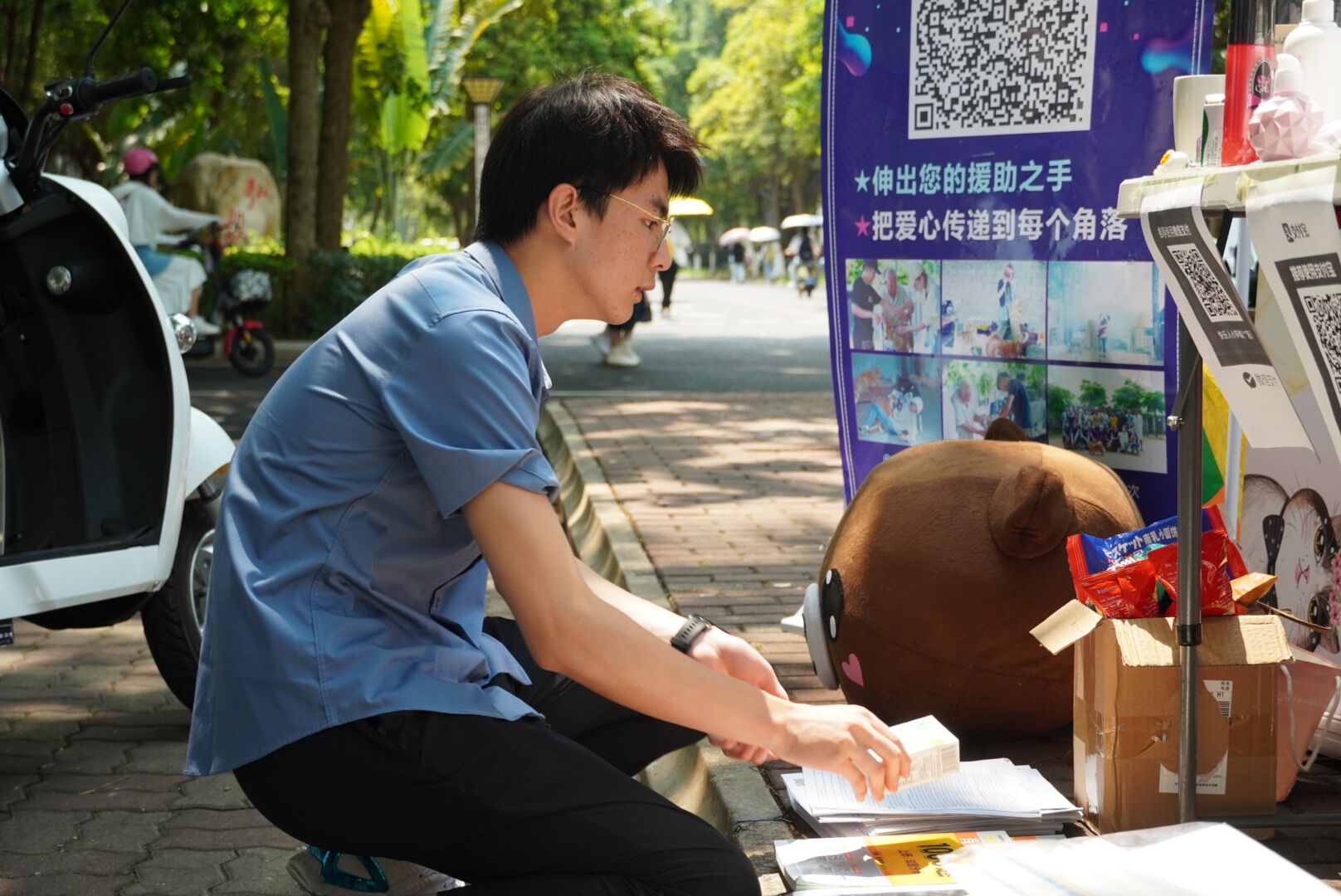 海甸校区椰林小道组织开展了“你我聚爱,暖心义卖”人文传播学院2021年爱心义卖活动。