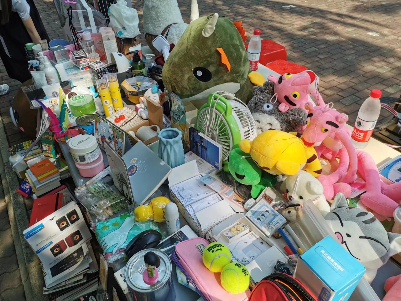 学生捐赠。活动开始前,志愿者们将活动摊位上的物品进行分类整理,划分为美妆洗护、文具用品、摆件玩偶、服饰等区域准备售卖。在爱心义卖活动期间,志愿者们向路上来往的同学们宣传爱心义卖活动的目的与意义,邀请同学们到摊位上挑选物品。有的同学在付款时会支付高于物品标价的金额,有的同学在购买义卖物品之后会将自己的闲置物品捐赠出来。志愿者们会给前来购买的同学们赠送小礼物以表谢意。此次爱心义卖活动为期两日,共筹得善款1253.5元。活动所获收益将全部用于置办猫咪需要的生活用品,捐至海南省小动物保护协会管理的流浪猫收容所。