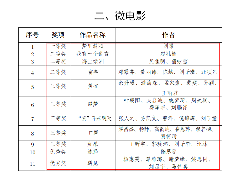 戏剧影视专业学生充分发挥专业优势,创作出大批优秀作品,斩获微电影类作品所有奖项。(红框内为情色小说