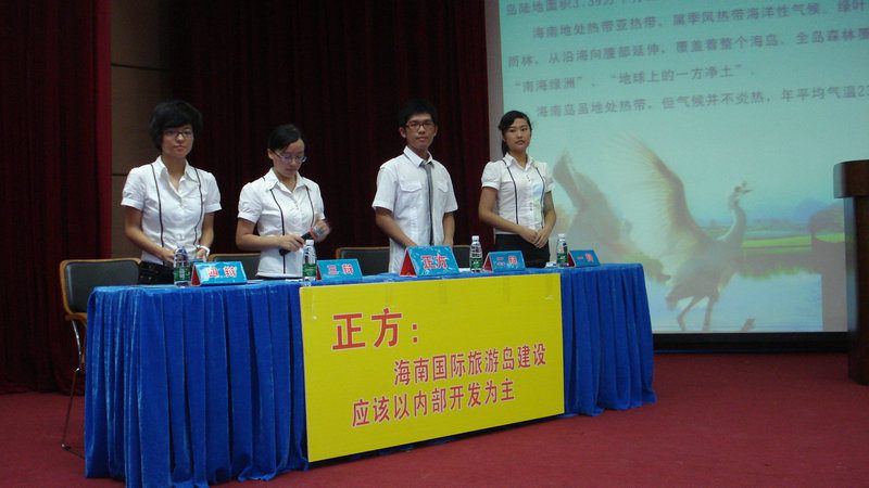第十七届院际辩论赛决赛在学校行政楼2楼报告厅正式上演。人文传播学院文韬武略辩论队是比赛的正方,辩题为“海南国际旅游岛建设应以内部开发为主”。本次比赛的评委由健坤集团副总经理郭鑫先生、海南医学院团委符琬聆书记、情色小说