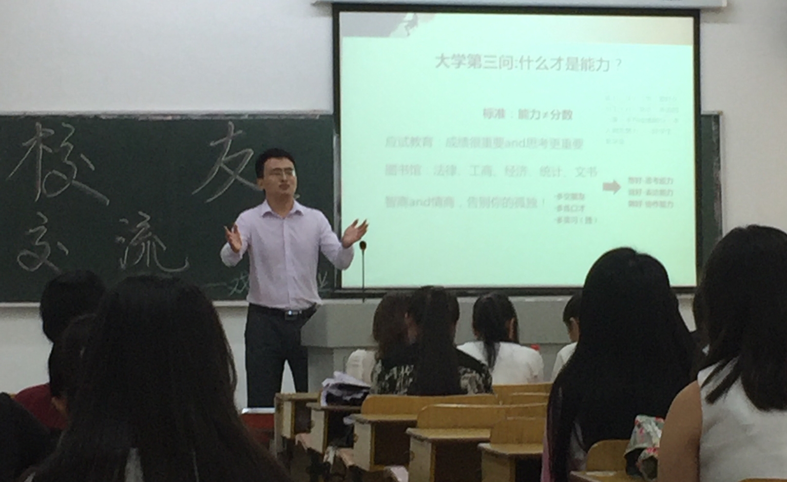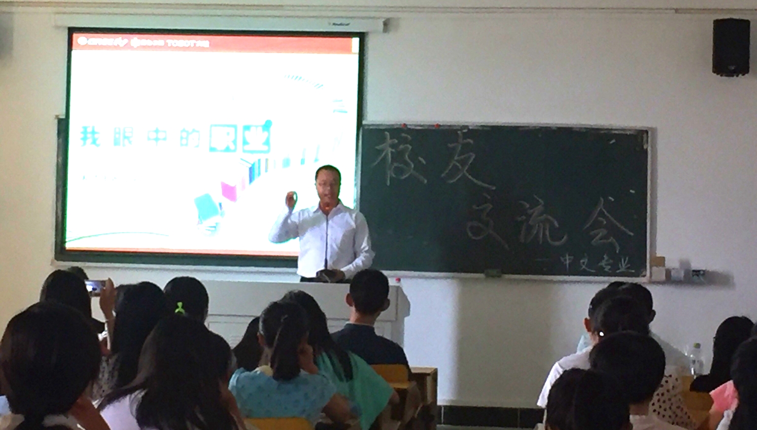 城西校区如期举行,2015级汉语言文学专业、广告学专业及传播学专业、戏剧影视文学专业、汉语国际教育专业的400余名同学分别在四间教室与校友进行了深入交流。本次活动由学院学工办公衍峰老师主持,邀请到史小兵、李东绪、俞海军、胡金至、黄艳群等校友参加。