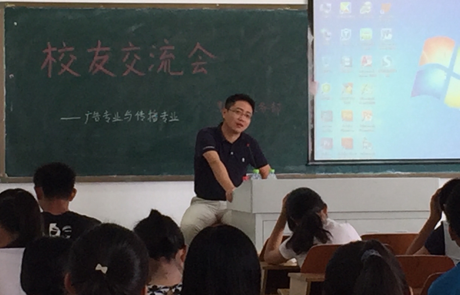 广告学专业的首届毕业生,他首先指出本次交流会的主题“职业指导”,详细分析了当今大学生的就业压力问题,并希望同学们要不断扩大自己的知识面,不要被专业知识所禁锢。戏剧影视文学专业的俞海平现任海航一卡通汇服务集团有限公司人资行政经理,2011年毕业,他在交流会开始时,送给了学弟学妹们八个字“人生如戏,刚刚开始”,他希望学弟学妹们能够在初中、高中、大学三个不同阶段树立不同的目标,把每一个阶段都当成新的开始,朝着目标不断前进,不断提高自己的实践能力。汉语国际教育专业邀请到了胡金至学长和黄艳群学姐,他们认为在大学生活中,同学们应该分清主次问题,不能把大量的课余时间都用来娱乐,而是要以学习为重,学习才是一个学生的本分。