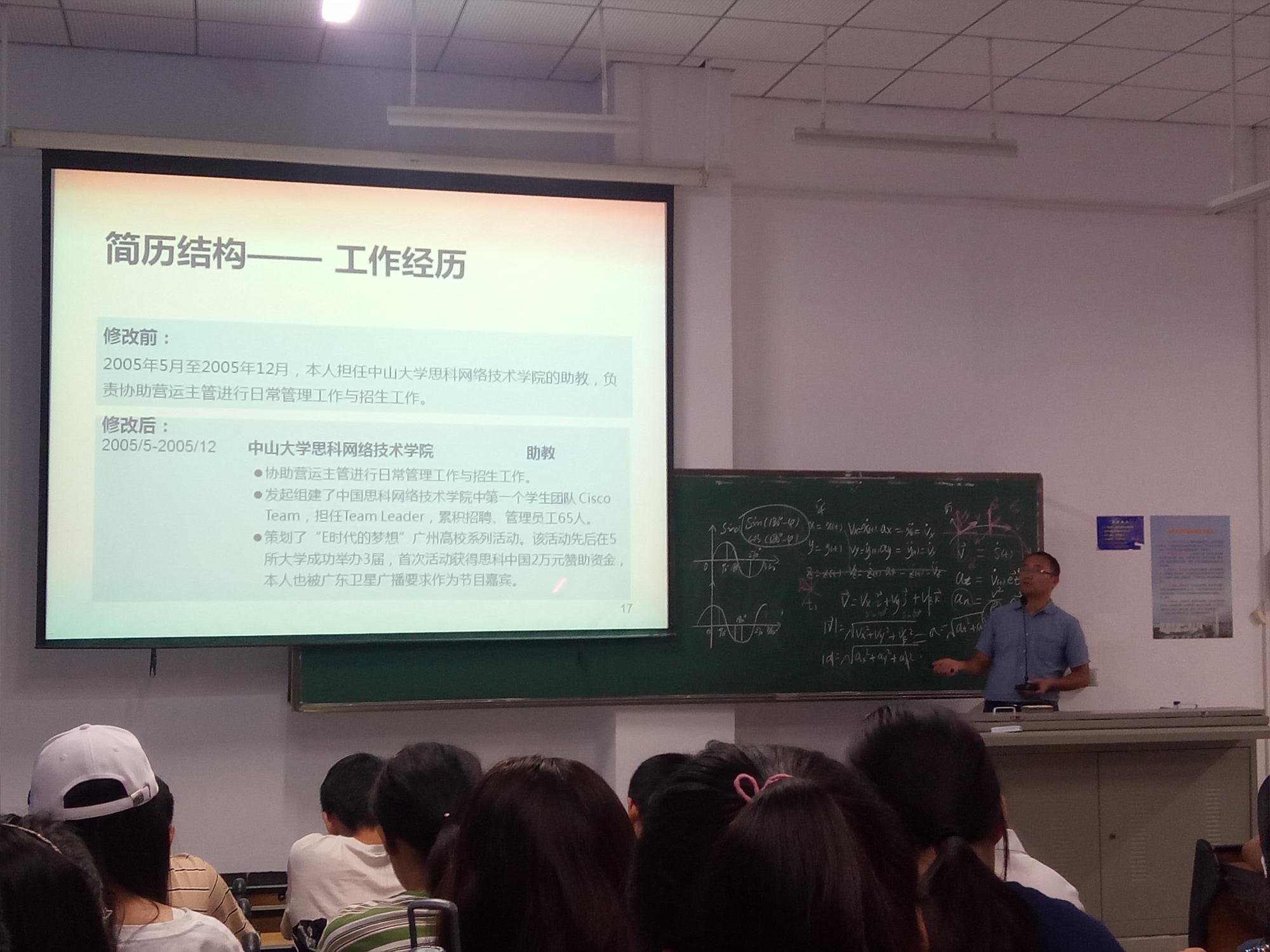9月29日下午,人文传播学院组织2016级广告学、传播学专业全体学生在5-214参加“如何制作一份吸引人的简历”讲座,这是2018年毕业生就业指导活动月中针对2015、2016级同学开展的第一场职场讲座,学工办公衍峰老师主讲。