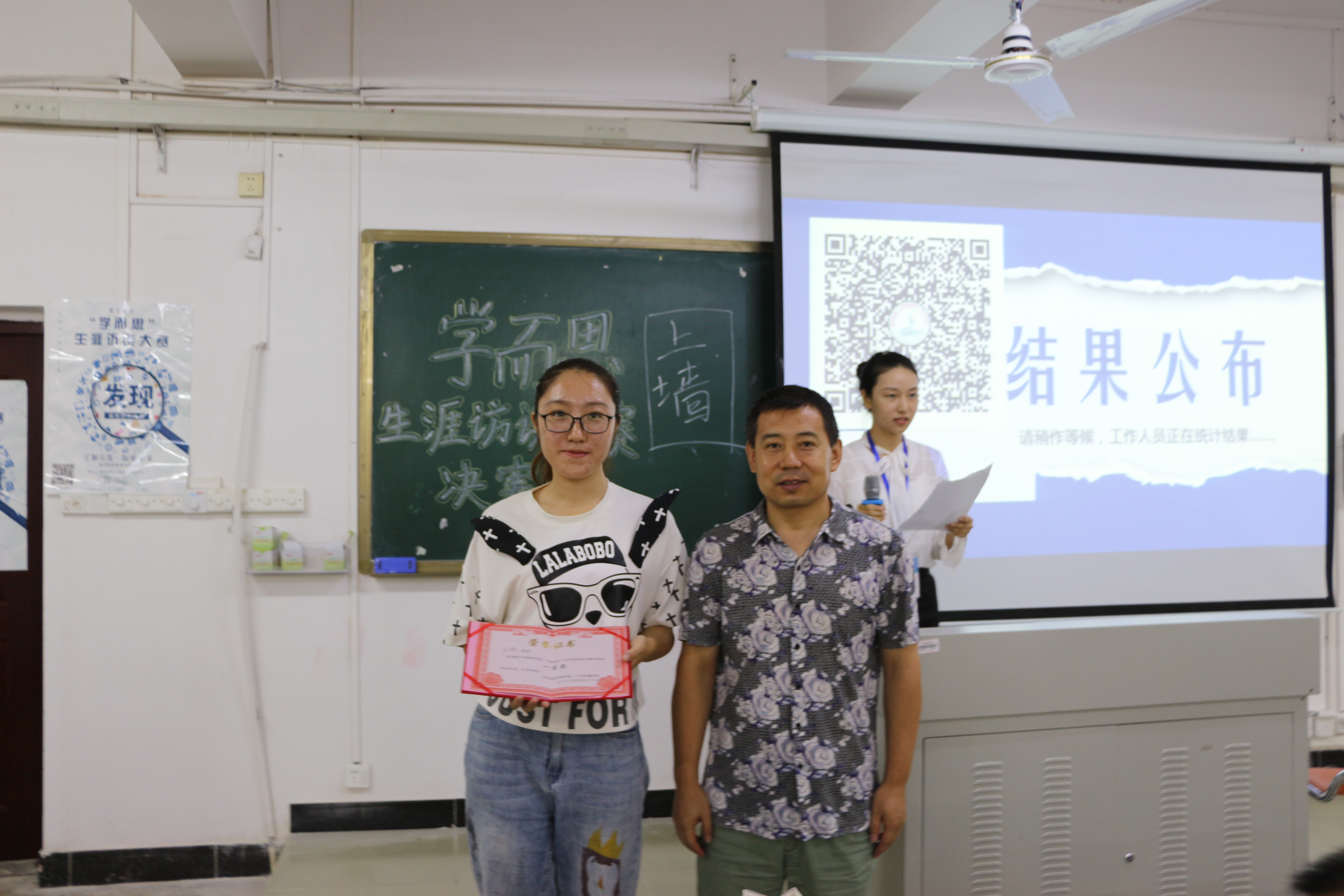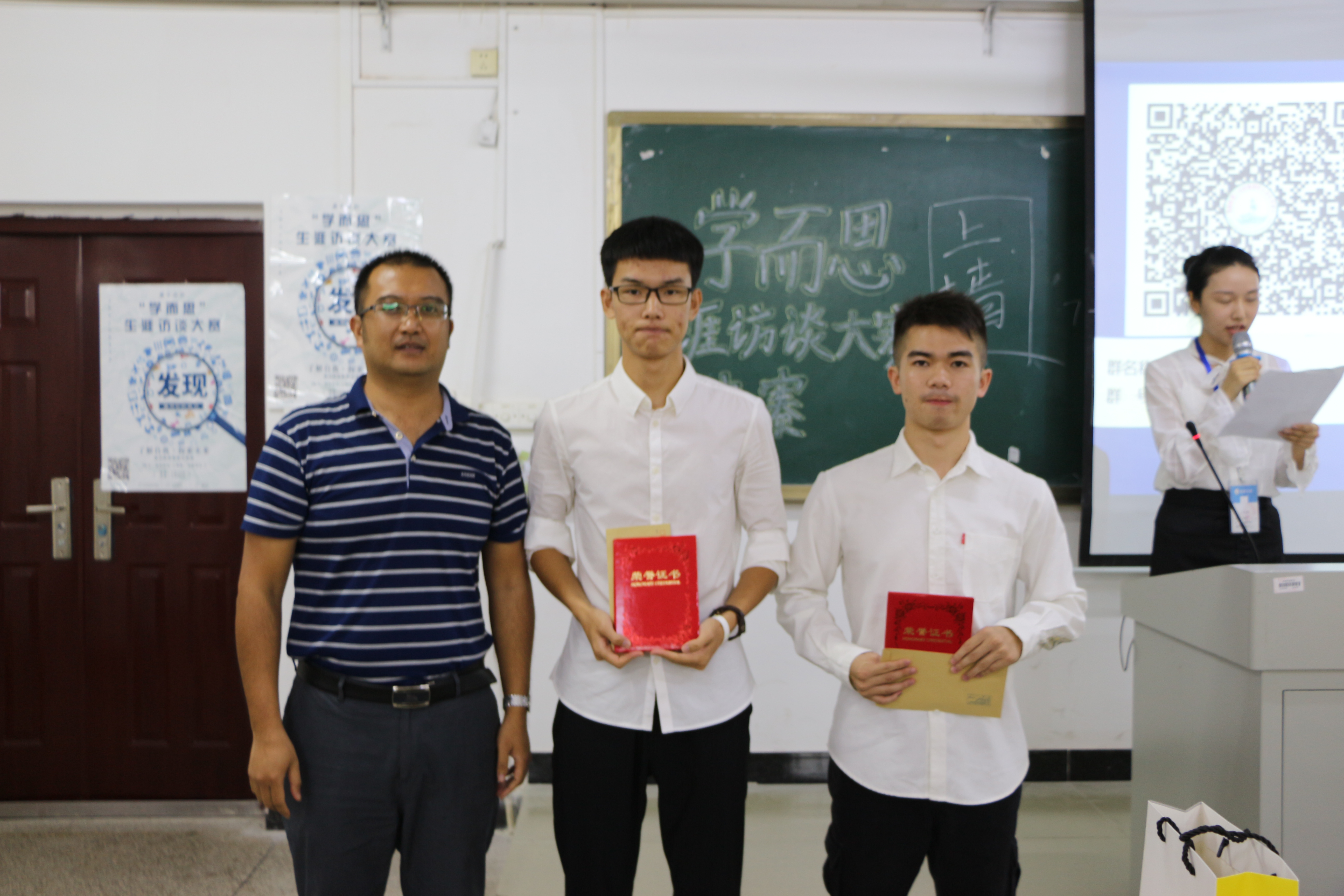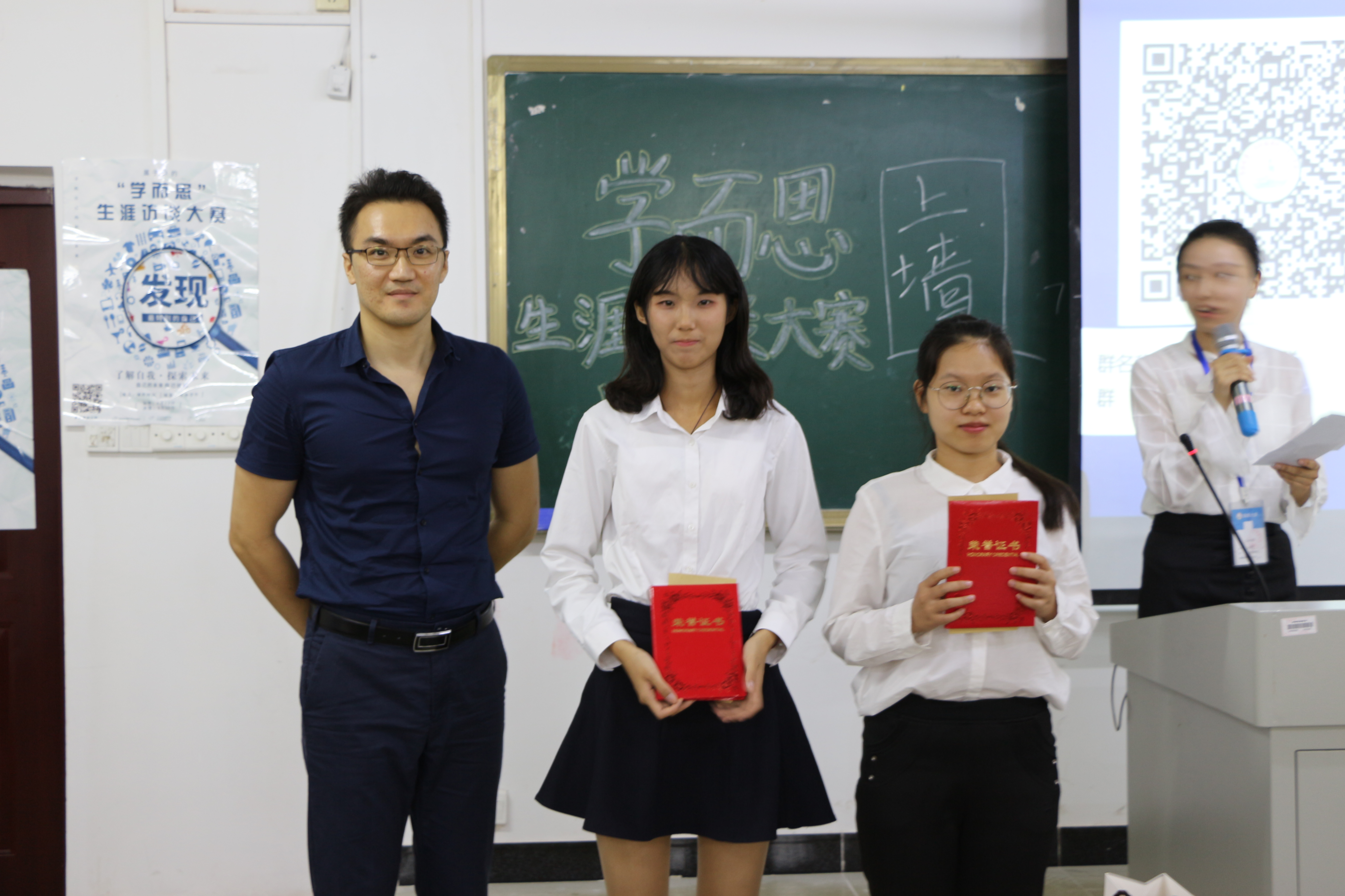 经过工作人员的紧张统分,最终决出了本次生涯访谈大赛的获奖选手,包括一等奖一名,二等奖二名,三等奖三名以及优秀奖四名。其中,于璐同学夺得桂冠,荣获本次生涯访谈大赛的第一名。随后,评委老师为获奖选手颁发证书并合影留念。最后,伴随着同学们热烈的掌声,“学而思”杯生涯访谈大赛圆满结束。