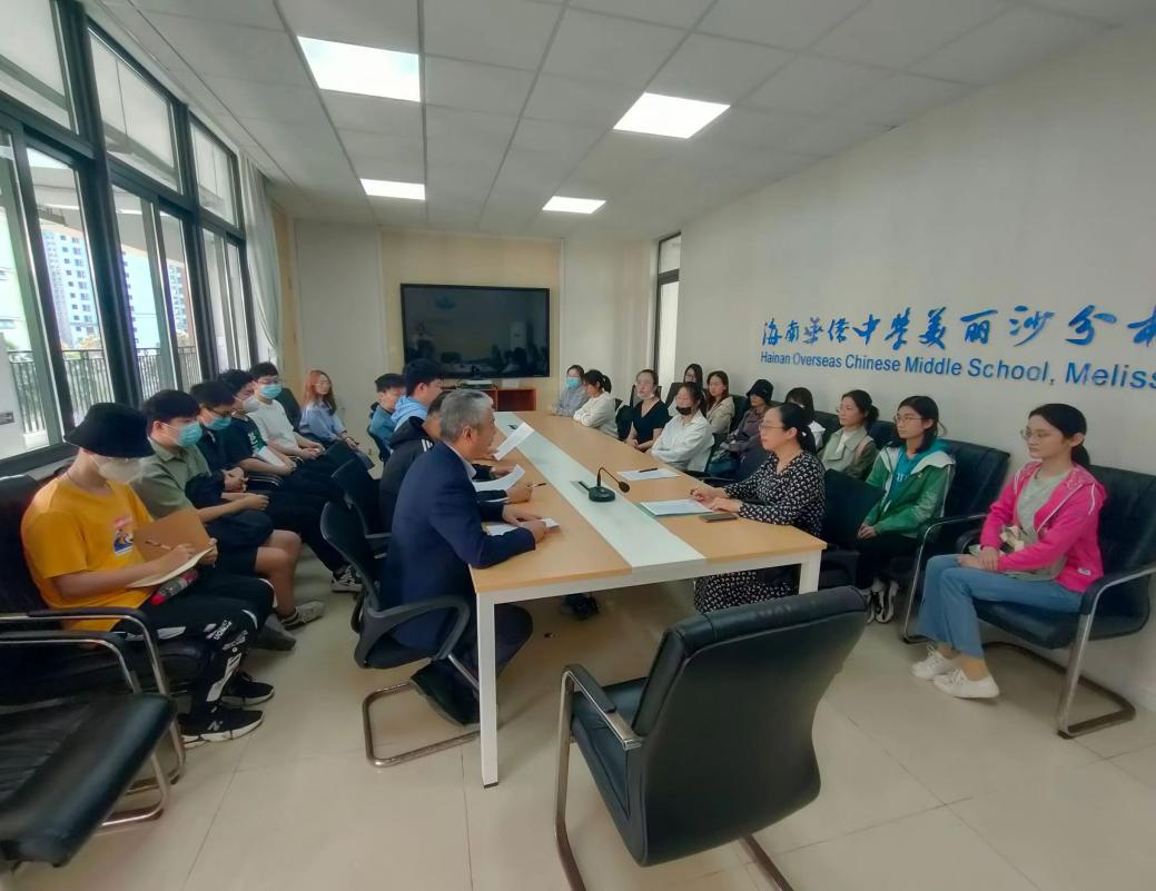 在学校,我们受到了热情的欢迎,由张副校长为同学们做了简短培训,并讲解了学校实习工作的相关事宜。由教学教研部文老师为同学们做职能分配并带领同学们参观了校园,与各部门主任与班主任进行了对接和沟通。侨中美丽沙分校的老师们充分尊重同学们的意见,根据大家的兴趣与要求把同学们分别安排在班级、办公室、教育教研部、保卫处等不同岗位。
