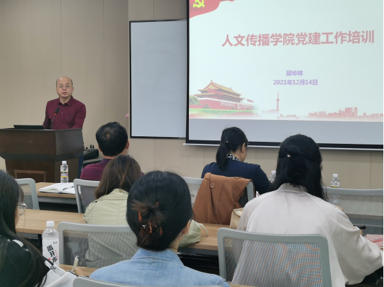 人文传播学院党委在社科楼B623举办了党建工作业务培训,特邀党建组织员林少敏、学院党委书记邱华祥、副书记罗邻球、所属支部全体支委及党建联合会学生骨干参加了培训。