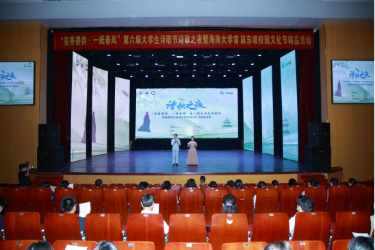 教授海滨,海南师范大学文学院副教授杨若虹,海南职业技术学院艺术学院音乐表演专业主任蔡建东,倾情演绎诗朗诵节目《苏轼诗词选诵》。