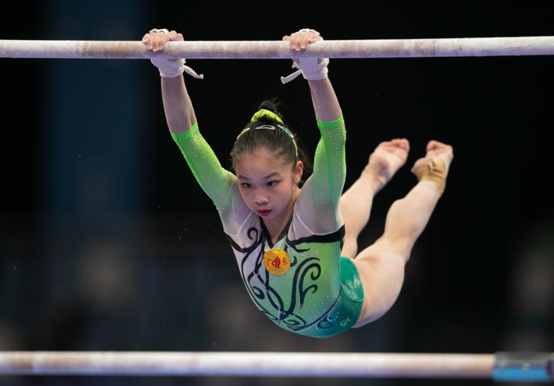 9月5日,广东队选手胡嘉菲在高低杠比赛中。新华社记者许雅楠 摄