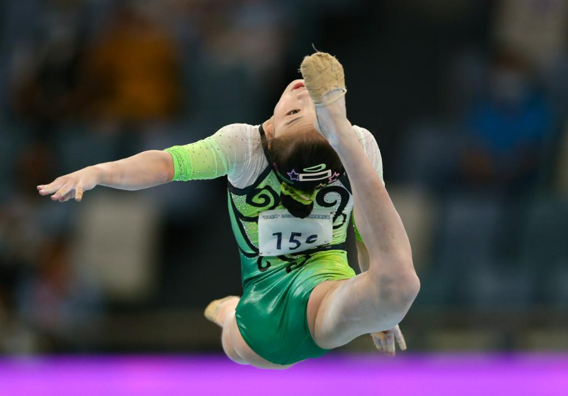 9月5日,广东队选手刘馨宇在女子自由体操比赛中。新华社记者许雅楠 摄