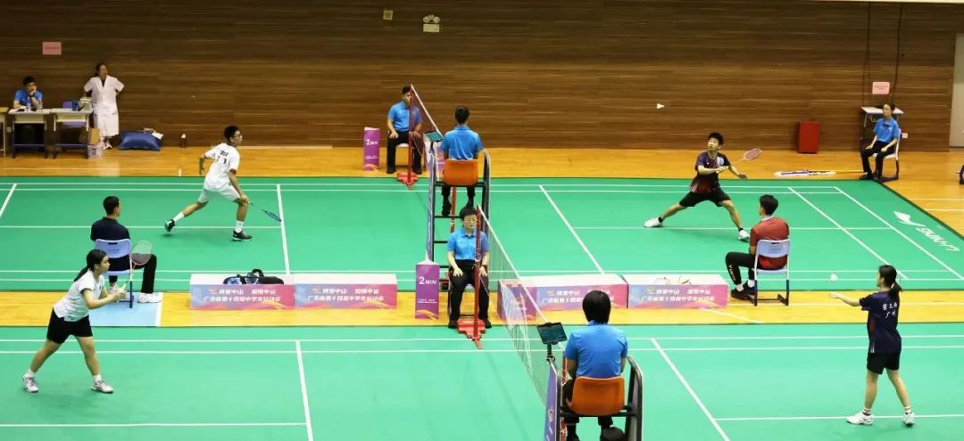 7月15日,广东省第十四届中学生运动会羽毛球赛事在中山市实验中学体育馆开赛