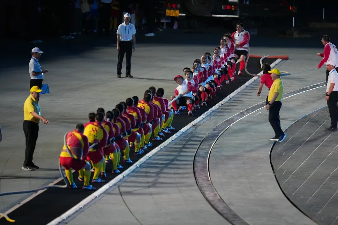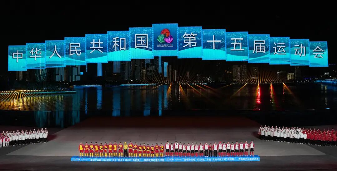 11月21日,第十五届全国运动会闭幕式在深圳欢乐港湾欢乐剧场“星辰大海”般的实景舞台举行。在暖场环节中,“喜迎十五运”广东省“百县千镇万村”系列赛——百县拔河冠亚军决赛热血登场,6支来自深圳光明、珠海斗门、中山小榄的队伍,67名拔河健儿携手300名三地啦啦队员,与现场8000名观众共同呐喊,以团结之力为这场湾区体育盛典奏响预热序曲。