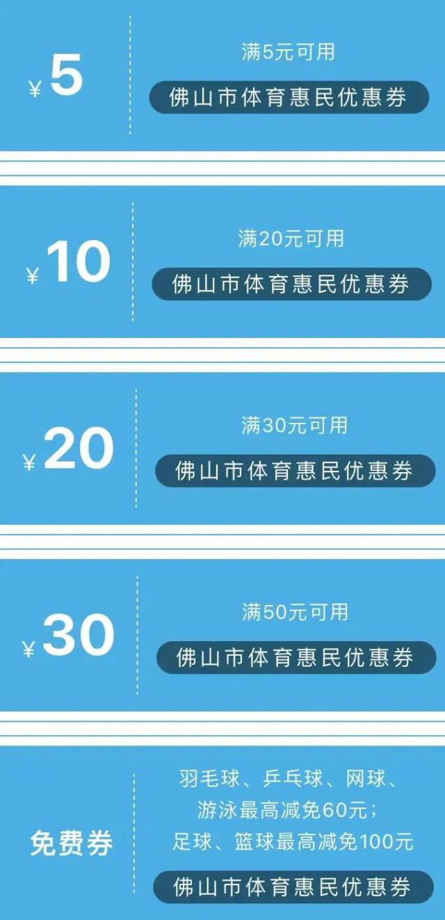 佛山市体育惠民优惠券来啦!本次优惠券涵盖佛山五区,于6月22日18:00开抢。