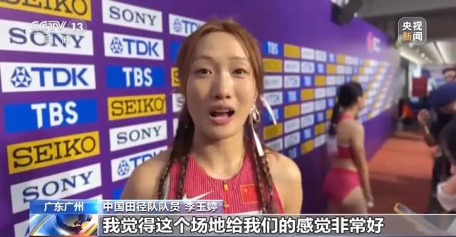 中国田径队队员李玉婷:我觉得这个场地给我们的感觉非常好,因为它非常有弹性,现场观众非常非常热情。