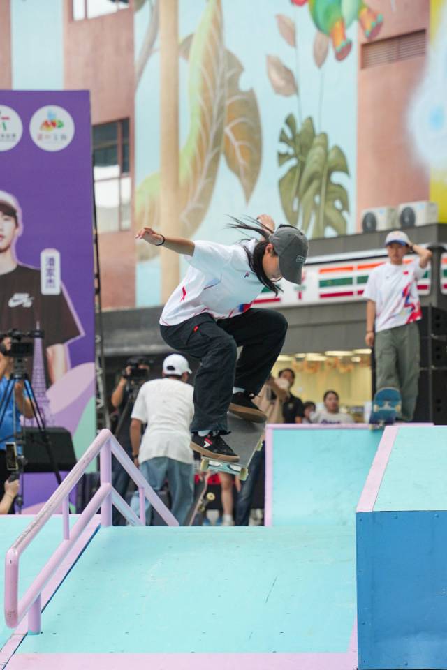 紧接着,滑板展示环节更是将现场气氛推向了高潮。郑好好、曾文蕙、朱沅铃、潘家杰、陈烨等滑板运动员在滑板道具上展示了他们高超的技巧和独特的魅力,赢得观众阵阵喝彩。
