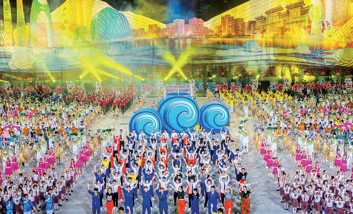 当“砚都磨就千古华章,美丽肇庆神采飞扬”的歌声响起时,4000多名演员齐声欢呼,唱响了满心的赤诚、期待……8月1日晚,肇庆新区体育中心内笙歌鼎沸,省运会开幕式演员们齐聚一堂进行主题歌部分合光、合视频,至此,开幕式全部篇章完成演员、灯光和影像的合排工作。