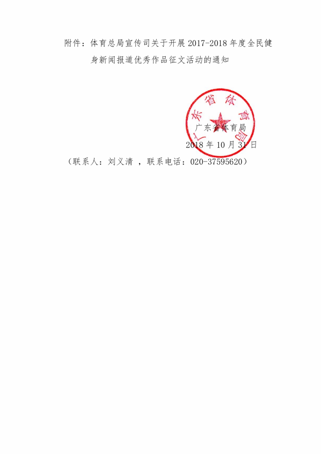 体育总局宣传司关于开展2017-2018年度全民健身新闻报道优秀作品征文活动的通知.pdf