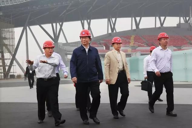 ▲黄宁生一行检查肇庆新区体育中心(梁小明 摄)