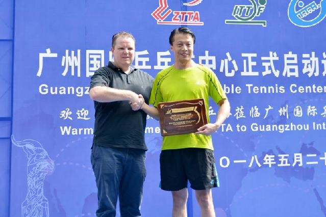 5月29日上午,广州国际乒乓球中心正式启动运行5周年系列活动暨欢迎国际乒联、中国乒协莅临广州国际乒乓球中心指导检查工作活动在天河体育中心西门亚运体育文化中心广场举行。国际乒联首席执行官Steve Dainton史蒂夫•丹顿出席活动仪式并致辞,还向广州国际乒乓球中心颁发了祝贺牌匾;国际乒联特别顾问季文元,中国乒协副主席陆元盛,广州市乒乓球协会名誉副主席朱振中,广州市乒乓球协会名誉副主席苏志佳,广州市体育总会主席罗京军,广州市体育总会副主席林燕芬等出席了活动仪式。